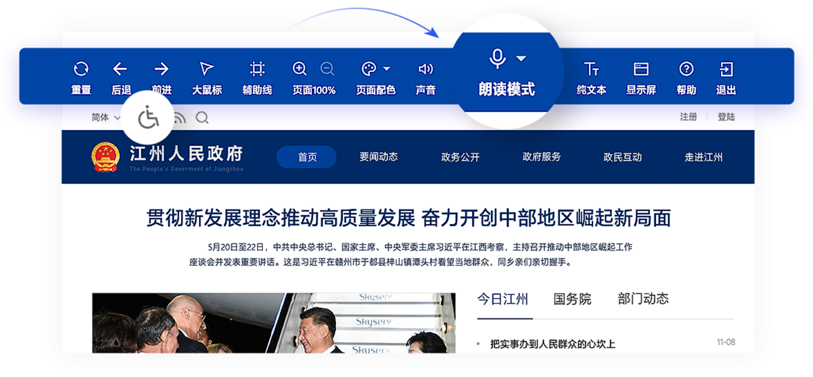 通過(guò)人機(jī)語(yǔ)音互動(dòng)的形式引導(dǎo)用戶操作,結(jié)合全鍵盤(pán)操作功能及無(wú)障礙輔助工具,讓視力障礙者訪問(wèn)網(wǎng)站更為便捷;系統(tǒng) 同時(shí)支持將網(wǎng)站內(nèi)容轉(zhuǎn)換為語(yǔ)音傳達(dá)給用戶,使得盲人朋友和不方便瀏覽網(wǎng)頁(yè)的用戶能夠方便地收聽(tīng)網(wǎng)站頁(yè)面中的內(nèi)容。無(wú)障礙閱讀支持插件式使用,能夠與任何系統(tǒng)及網(wǎng)站集成,并且不用進(jìn)行二次開(kāi)發(fā),只需要簡(jiǎn)單的復(fù)制、粘貼操作即可使用。