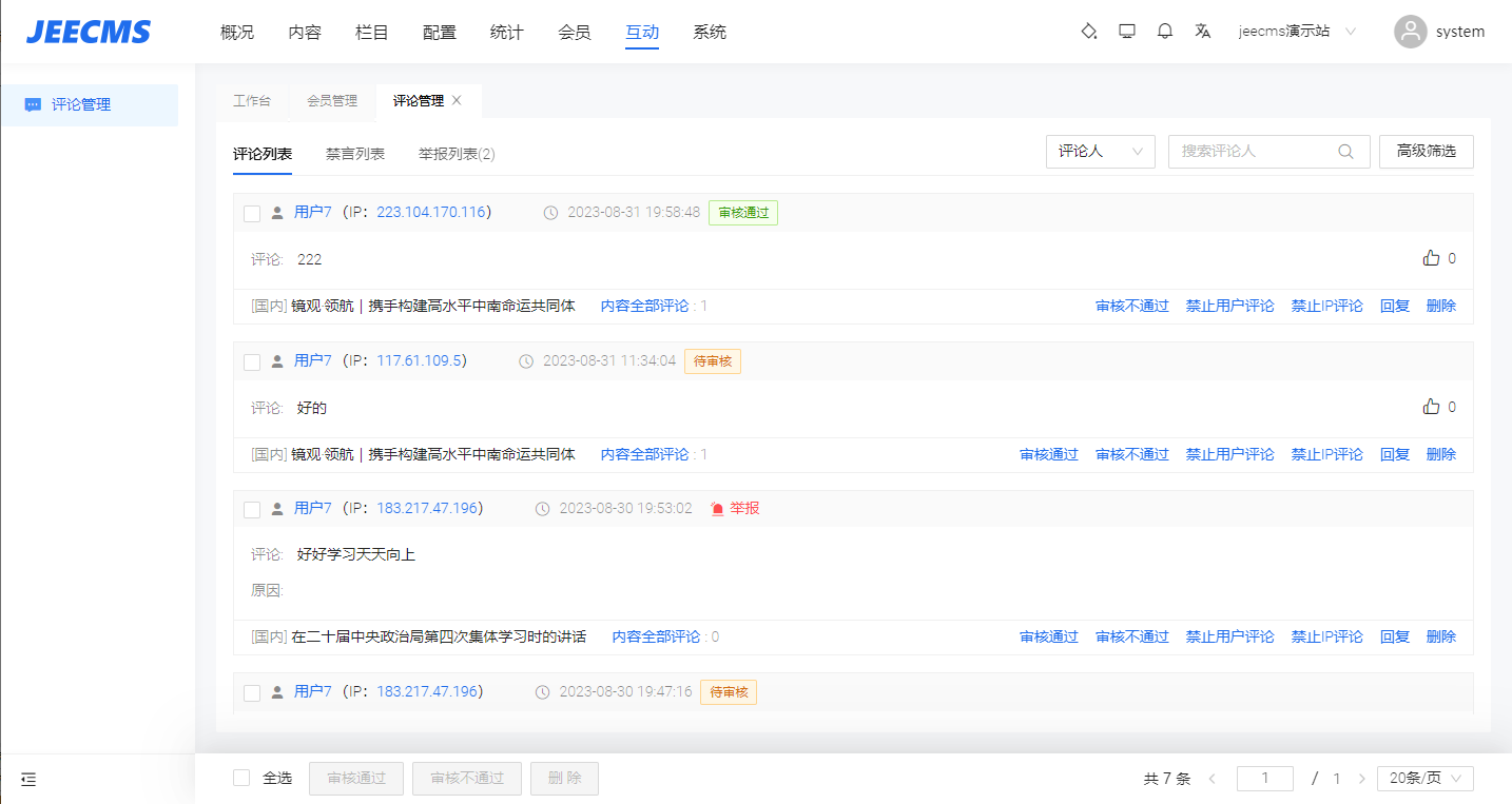 【JEEMS】?jī)?nèi)容列表UI樣式優(yōu)化,新增評(píng)論管理功能,JEECMSx2.1版本正式發(fā)布。